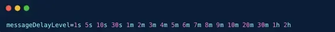 producer.send(msg);RocketMQ 4.X 版本默认支持 18 个 level 的延迟消息, 通过 broker 端的 messageDelayLevel 配置项确定的。